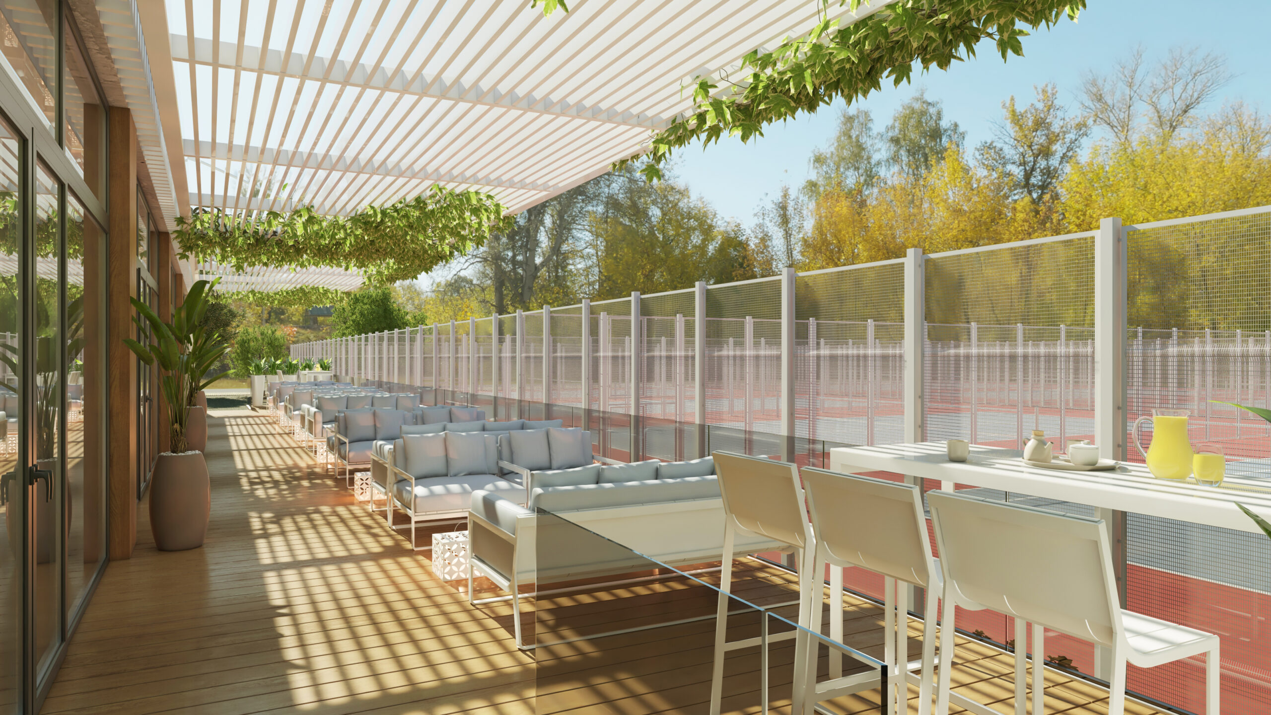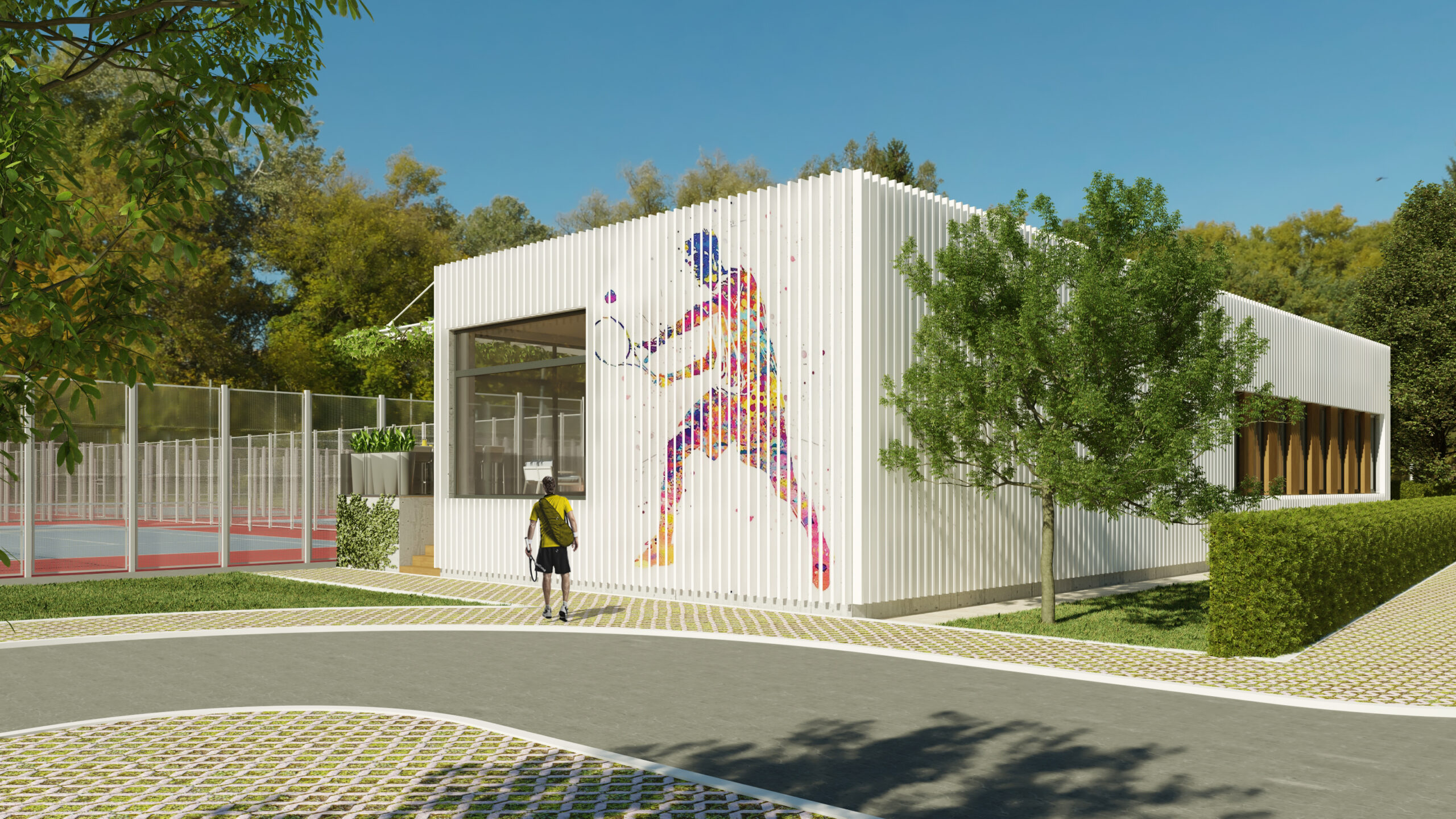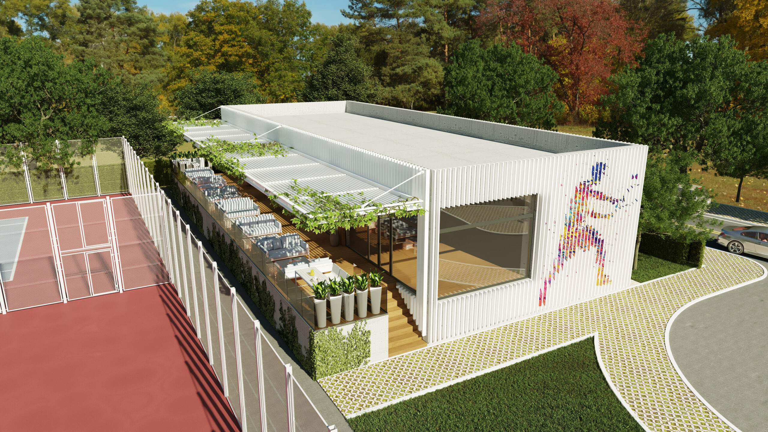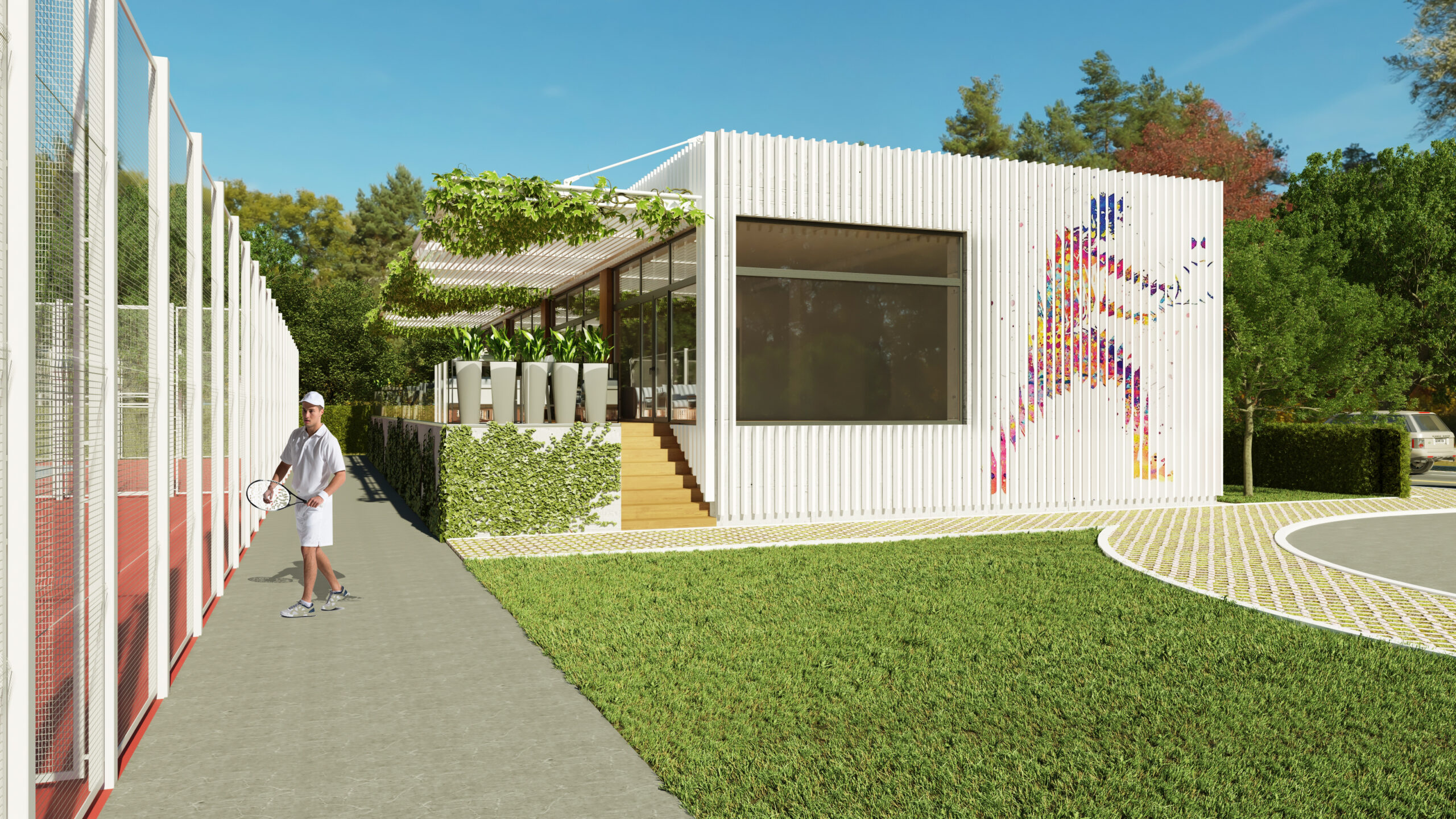 Tennis courts are organized on a field of 8000m2 while the multifunctional building has a construction area of 500m2.