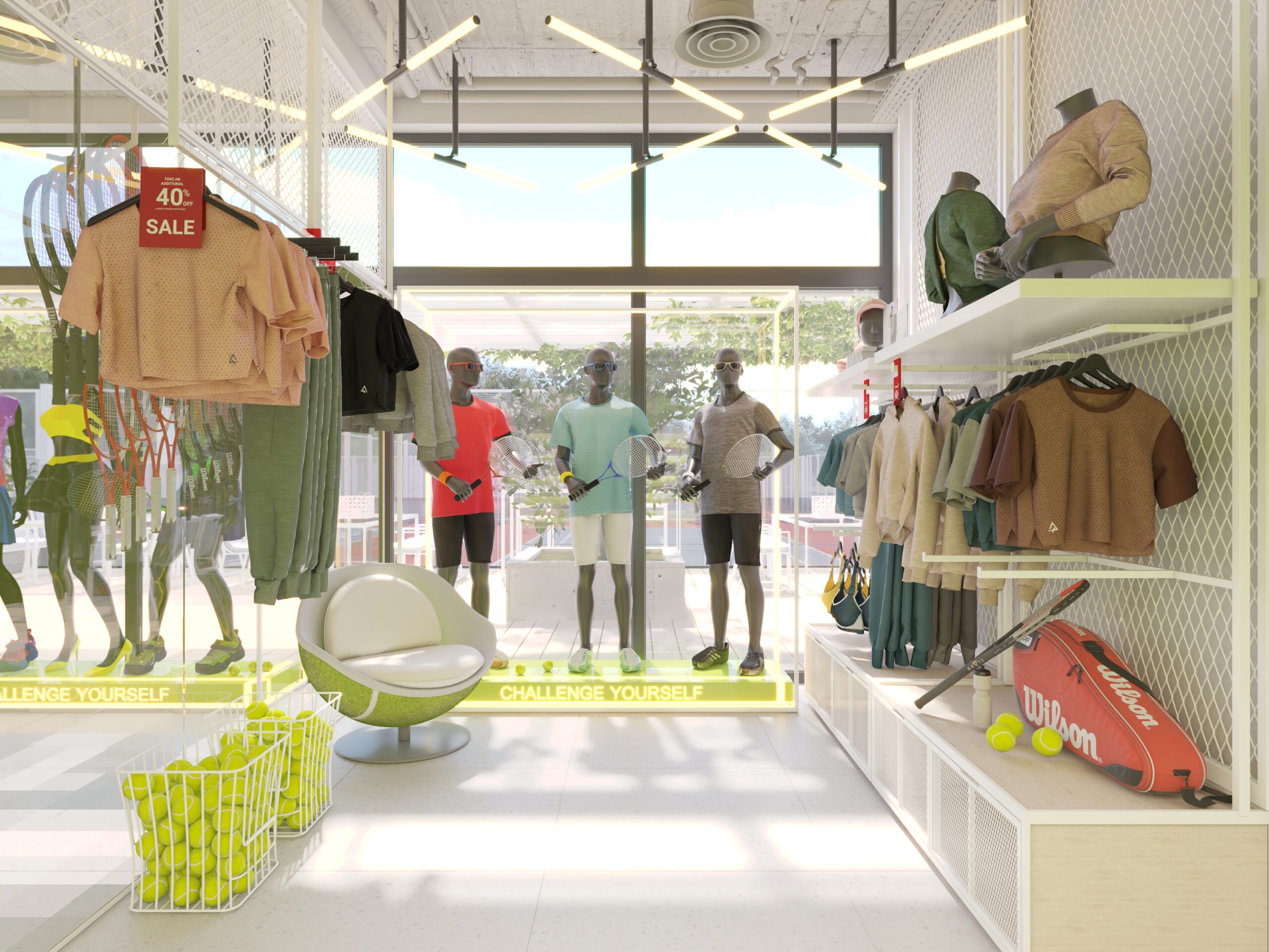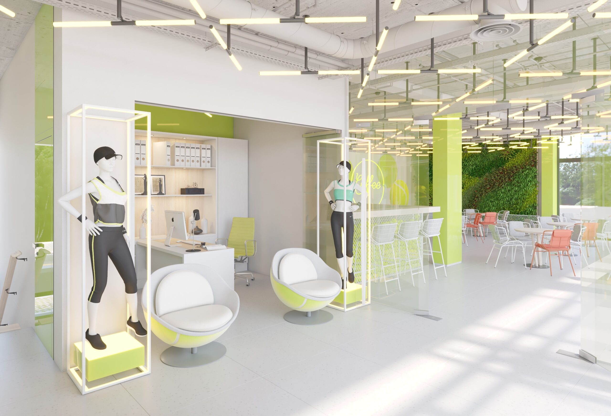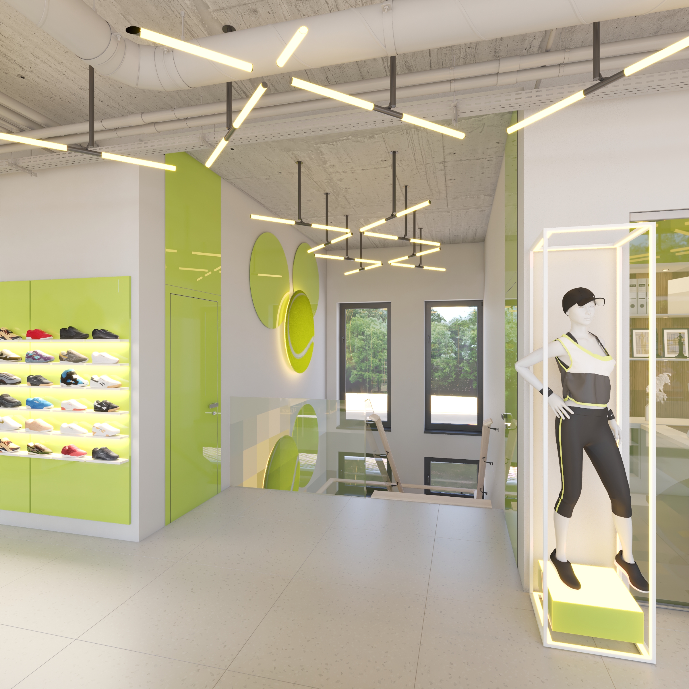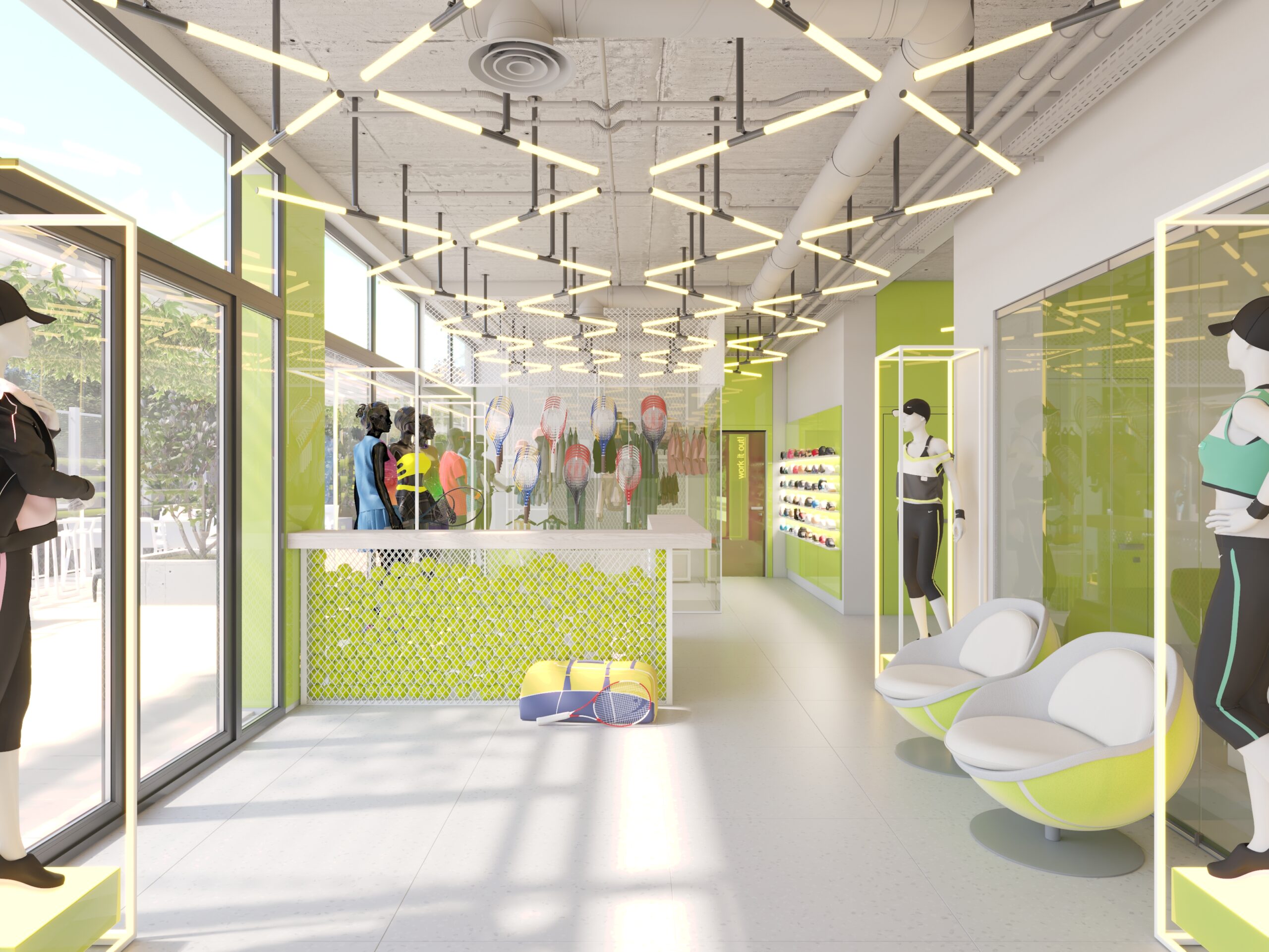 Tennis courts are organized on a field of 8000m2 while the multifunctional building has a construction area of 500m2.